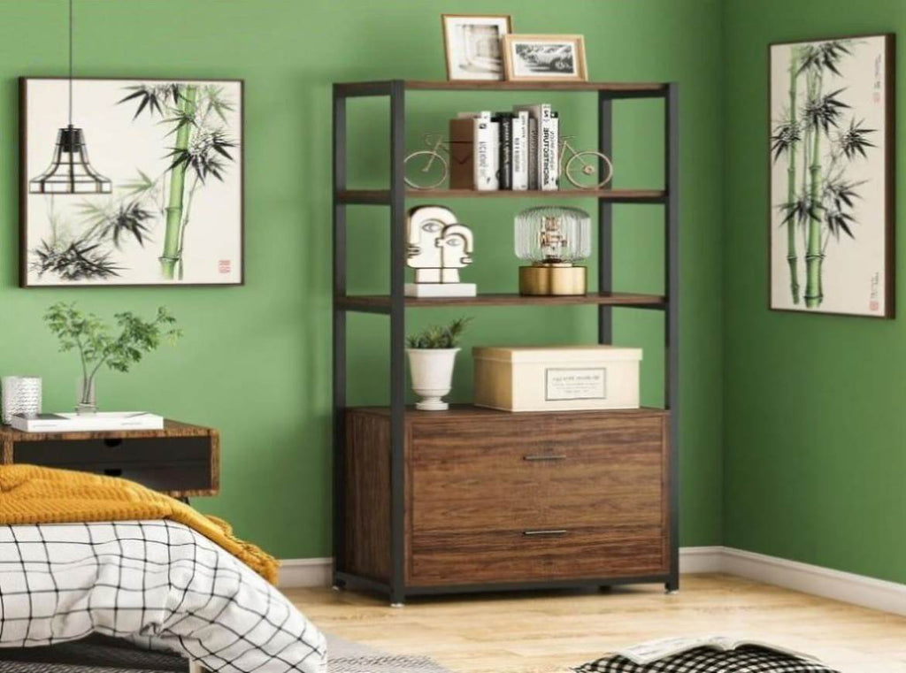 [ 2-Tier Drawer Storage ] - [Important information: Please check the drawer size before buying. This is not a filing cabinet and cannot accommodate A4, F4, letter size, and legal-sized suspension files.] Designed to meet diverse storage demands, the Tribesigns storage bookcase with 2-tier large drawers provides a private space to preserve your important documents, letters, and favorite office supplies.