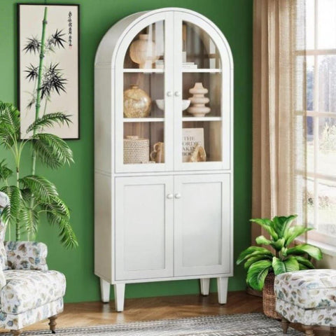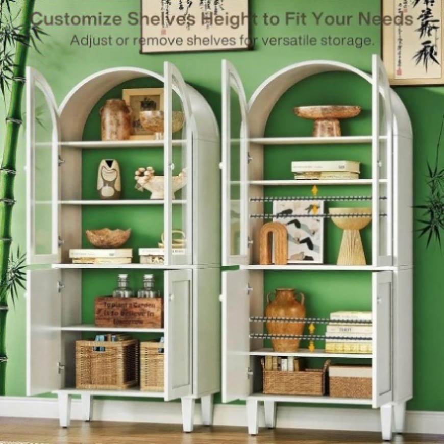 Elegant Arched Design: Boasting a chic arched top, two wooden doors and two tempered acrylic doors, our bookcase delivers sophistication to any space. Perfect for showcasing your china and curio, adding a warm and welcoming feel to your space