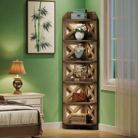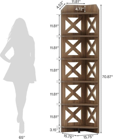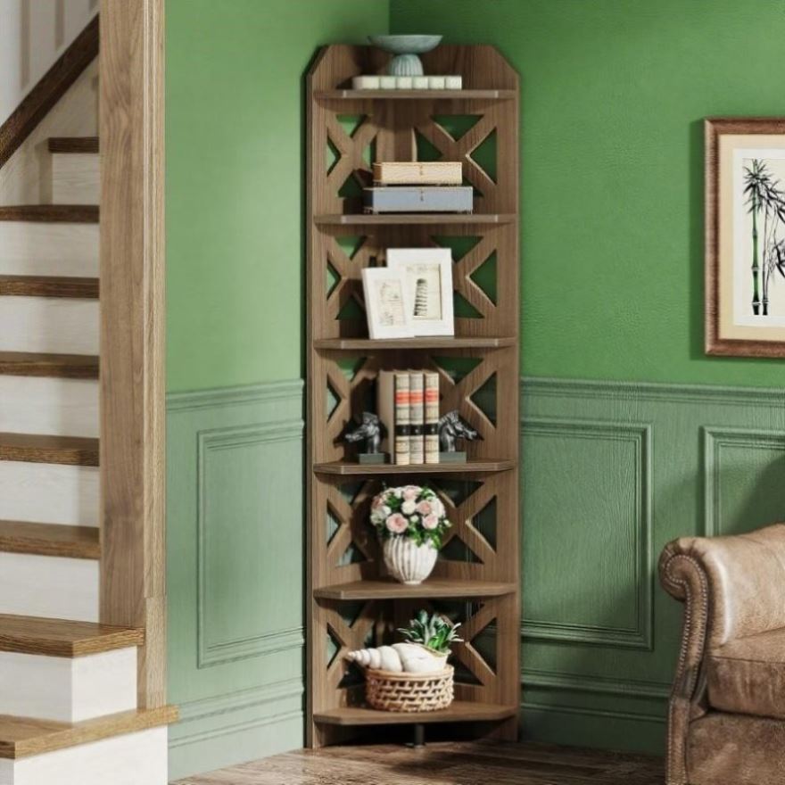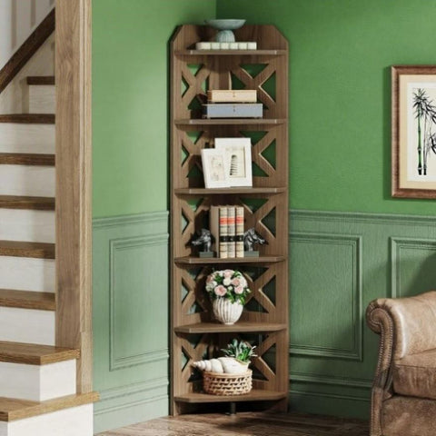 • Well-Designed: This 6-tier corner bookshelves showcases an unbeatable blend of traditional and modern aesthetics with its rustic brown hues and X-shaped side frame design, working harmoniously with diverse decor styles