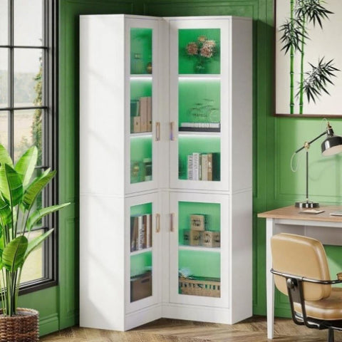 L-Shaped Storage with Doors: Ingeniously designed in an L shape, this tall bookcase seamlessly fits into any corner. It offers ample space with its five shelves, ideal for book organization, display, and more
