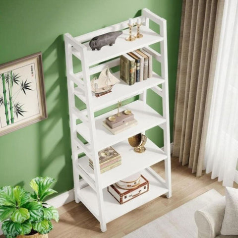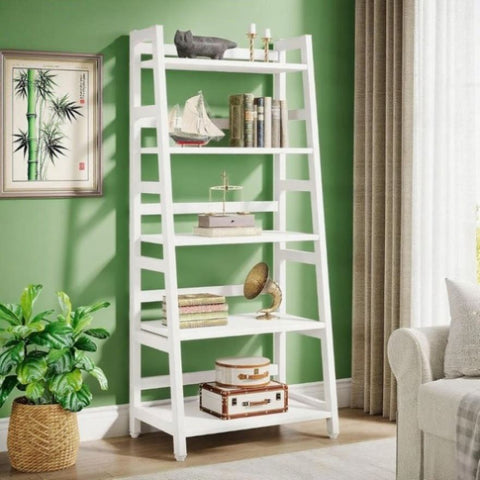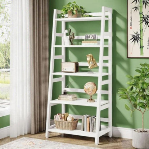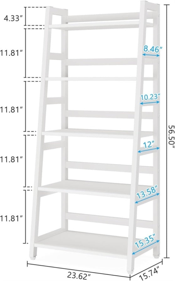 ✔ 【5-Tier Large Storage Capacity】 : Overall size: 23.6”L x 15.7”W x 56.5”H. The ladder storage shelf provides ample storage space for your books, knickknack, family photos, ornaments and more. Bottom shelf is 11inch in high which allows you to put baskets on it