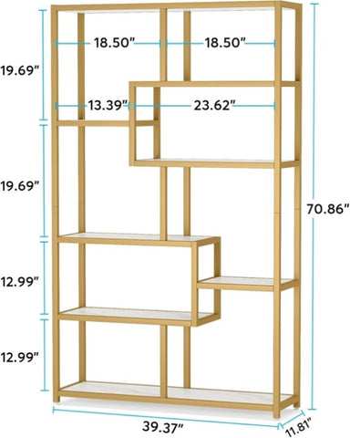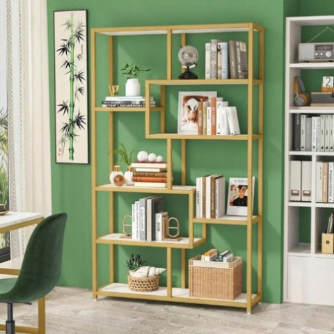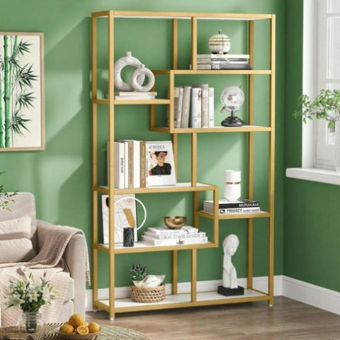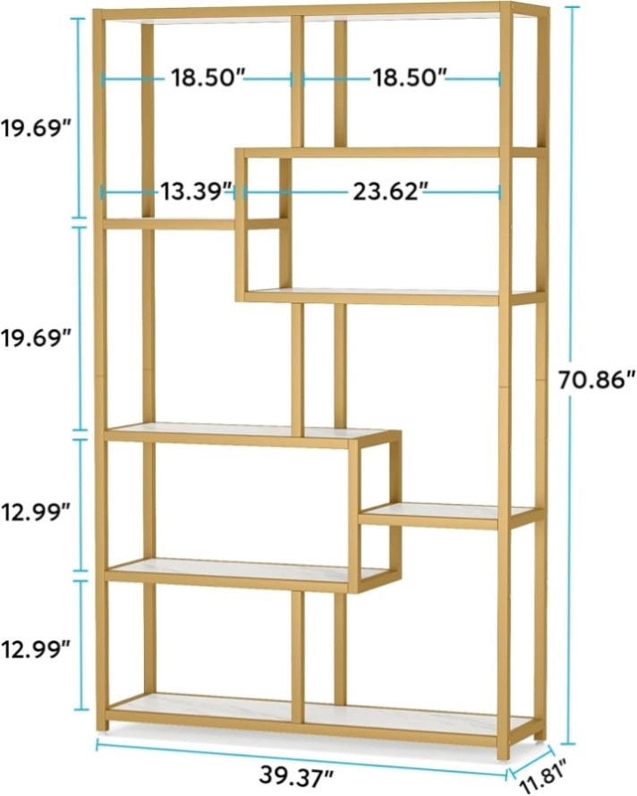 • Outstanding Design: Especially designed with a golden frame, this chic bookcase blends well with streamlined minimalism and modern style. It is perfect for a simple and modern home decorating style. Its luxurious yet elegant look and simple structure make it a fashionable and functional fit in any room