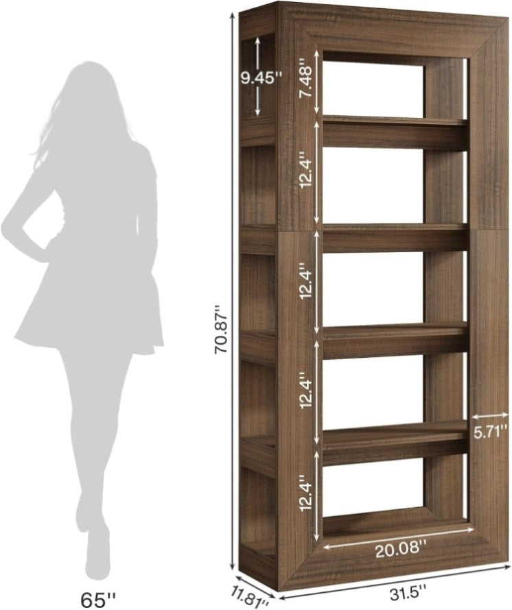 Generous Storage Space: Measuring 31.5" W x 11.8" D x 70.9" H, this 5-tier bookcase offers flexibility in organizing your collection, whether it's books or art pieces. Enhance your space with this functional and stylish bookshelf