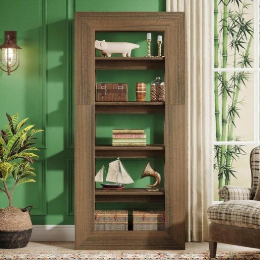 Versatile Use: The dark brown finish gives the bookcase a sophisticated look that complements any decor style. This vinatge brown bookshelf is perfect for organizing living rooms, making reading nooks, or adding elegance to offices