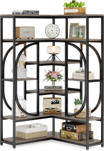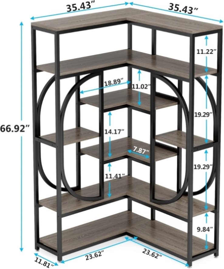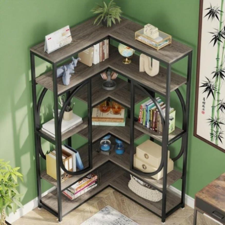 Large Corner Bookcase: Get an upgrade of the corner in your home with this corner shelving unit, its large size adds visual interest to the room and provides a unique way to display books, decor. The 90° right-angle design perfectly fits the corner and doesn’t occupy too much floor space, makes full use of the limit corner space