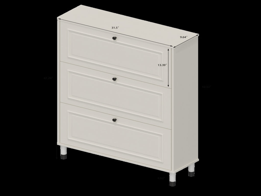Entryway Elegance Shoe Cabinet:Stylish White Flip-Door Design blends with modern decors. Total 47.24"H slim profile tucks neatly in entryways (as narrow as 9.45"), hallways or even behind doors. Dust-proof compartments keep porches clutter-free while showcasing decorative top shelf