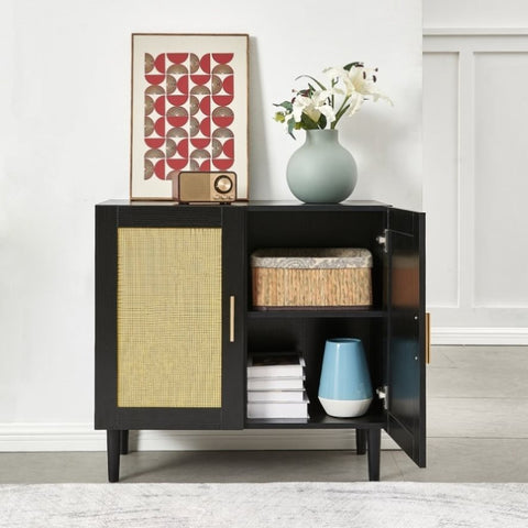 Buffet cabinet is made of premium particleboard and natural rattan. The material is safe and environmentally friendly, sturdy and durable, and easy to clean, which promises a long service life.
