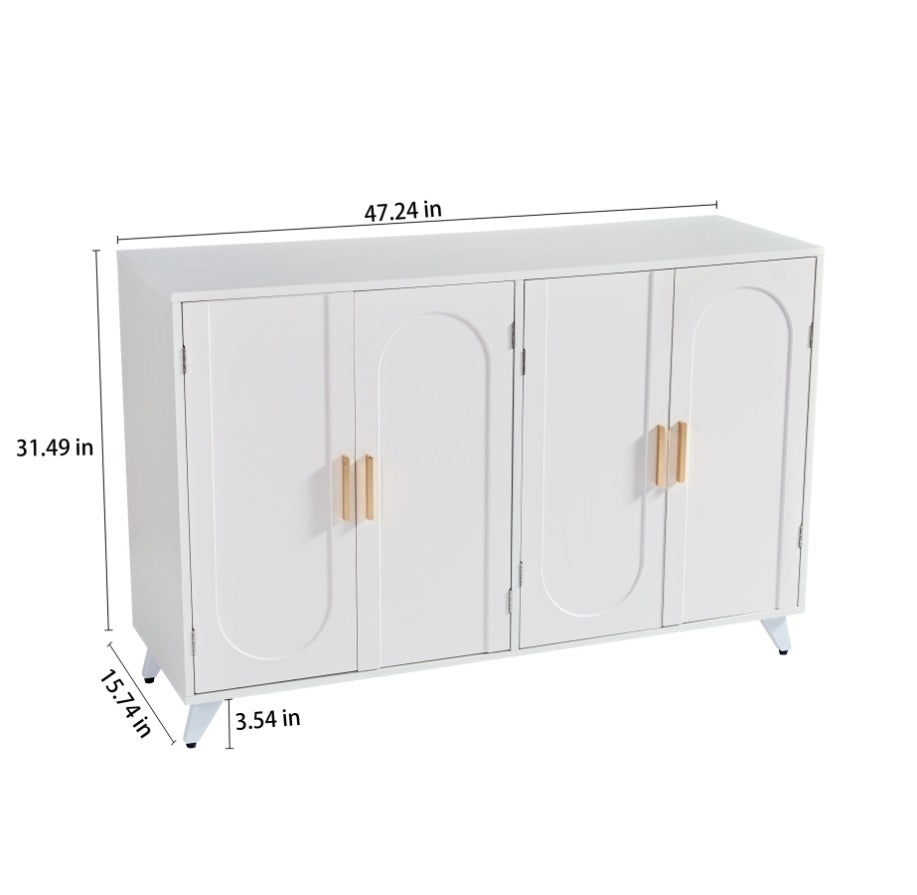 Modern Accent CabinetThis 4 door storage cabinet with water ripple design is suitable for decorating most homes, and the combination of gold and white will provide an attractive visual effect.