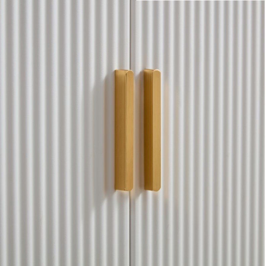 This 4 door storage cabinet with water ripple design is suitable for decorating most homes, and the combination of gold and white will provide an attractive visual effect.