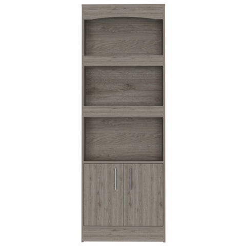 Simma Bookcase, Metal Hardware, Three Shelves, Double Door Cabinet -Light Gray B20091982