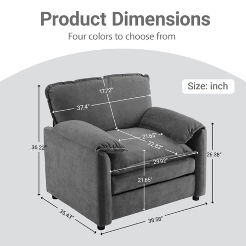 Single Chair 38 Inch Oversized Reading Chair Comfortable Cushioned Lounge Armchair Soft Chenille W1829P265024