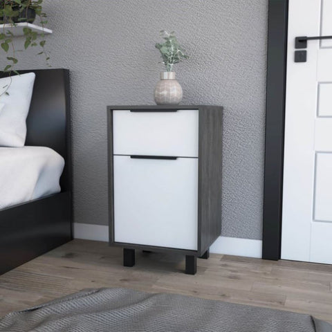 Smokey Oak and White 1-Drawer Nightstand B06280711