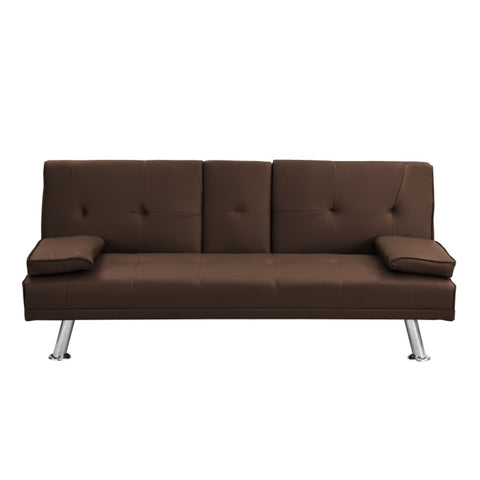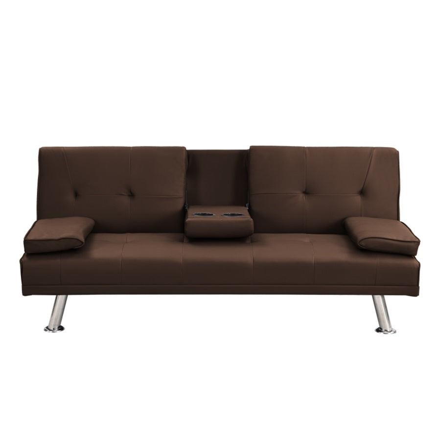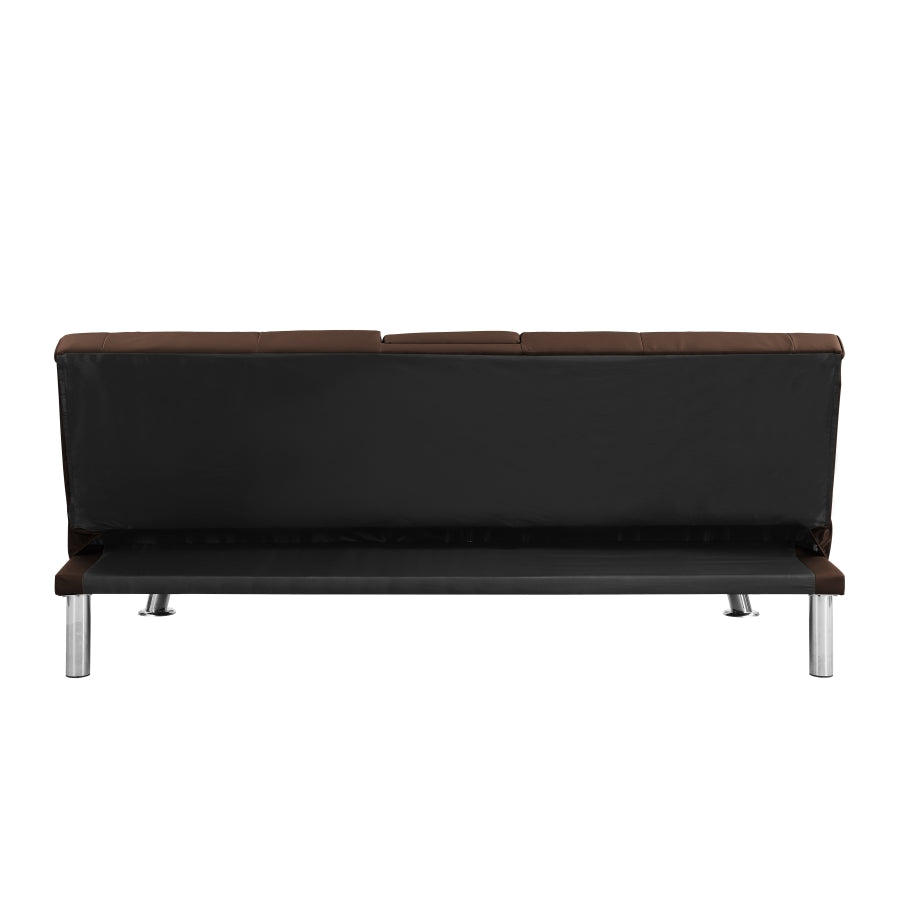 Sofa Bed with Armrest two holders WOOD FRAME, STAINLESS LEG, FUTON BROWN PVC W2297P164939