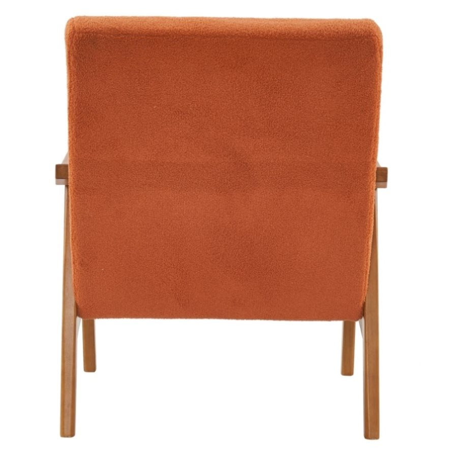 Solid Wood Armrest Teddy Velvet Simple Single Indoor Lounge Chair Backrest Burnt Orange 87153687
