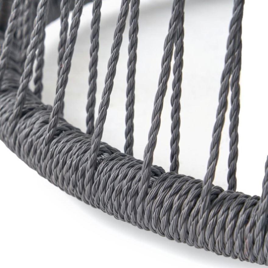 CHIC AND BOHO - The natural texture of the rope siding contrasts boldly with this piece's sleek tempered glass top; it's supported by a robust iron frame.