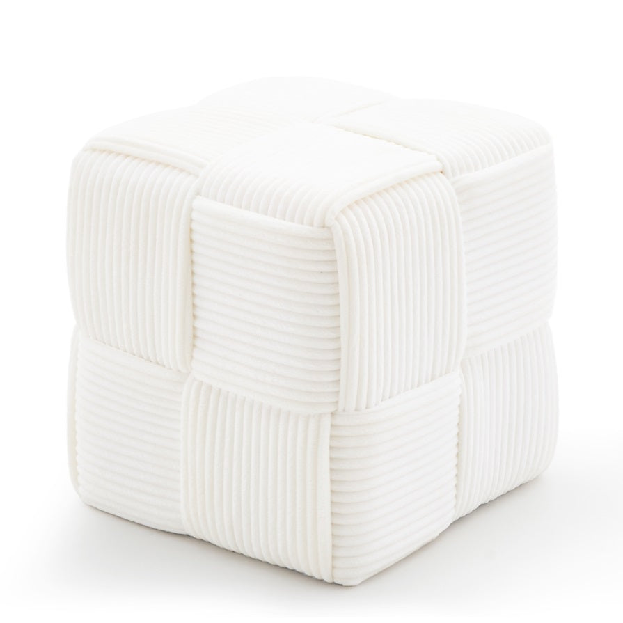 Square Ottoman Foot Stool Corduroy Vanity Chair Bench with Padded Woven Footrest for Entryway Living 73016618