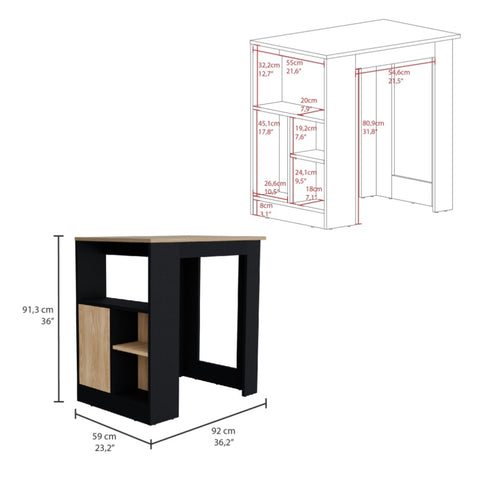 Stirling Kitchen Island with 1-Door Cabinet Push to open System and Side Shelves Black - Natural Oak B200P240240