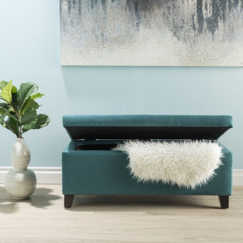 This ottoman comes with ample storage space for all of your pillows and blankets. This uses pressure hinges so that the lid will stay open on its own and will also ensure a soft close.