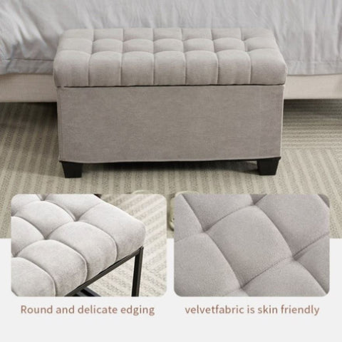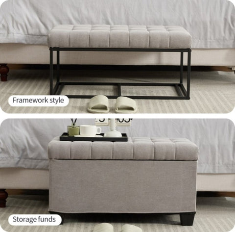 [Stable, Strong, Sturdy] Crafted with a robust steel frame, quality MDF top, and premium linen-look fabric, this bench with storage boasts long-lasting stability and strength