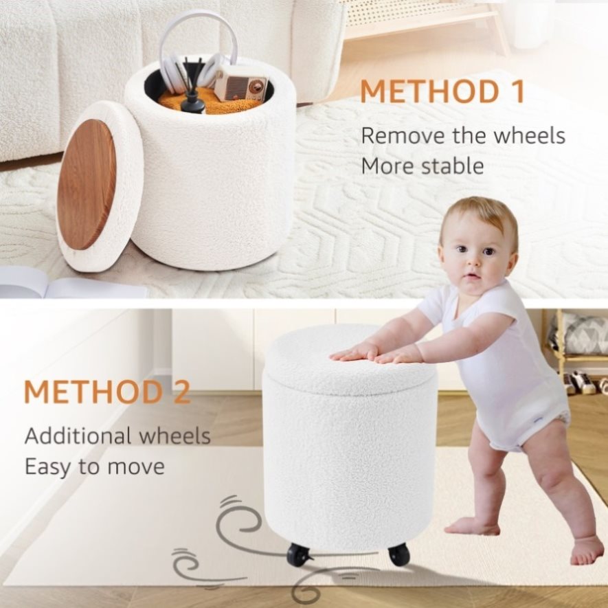 • Easy Assembly: You can easily assemble the footstool and legs in just a few minutes. you'll have a beautiful and functional storage vanity stool. The round rolling stool is suitable as a gift for family, relatives and friends