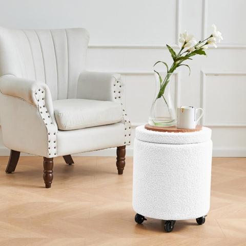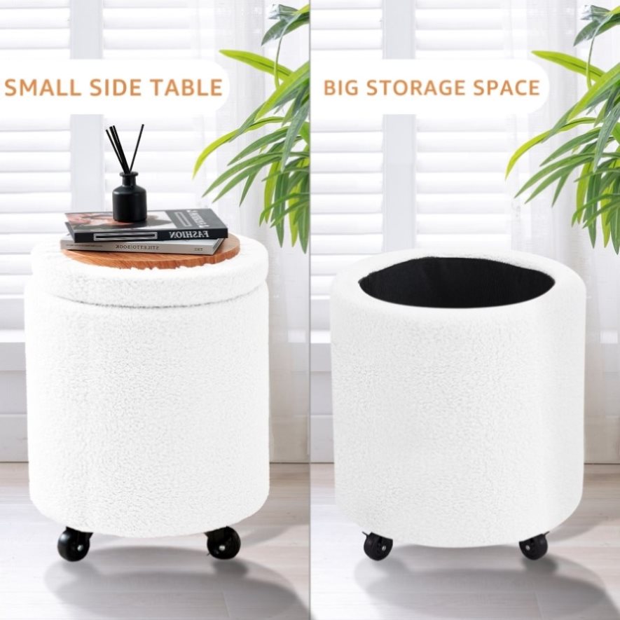 Storage Ottoman Foot Rest Round Footstool Teddy Velvet Footrest Multifunctional Rolling Stool Coffee 75414386
