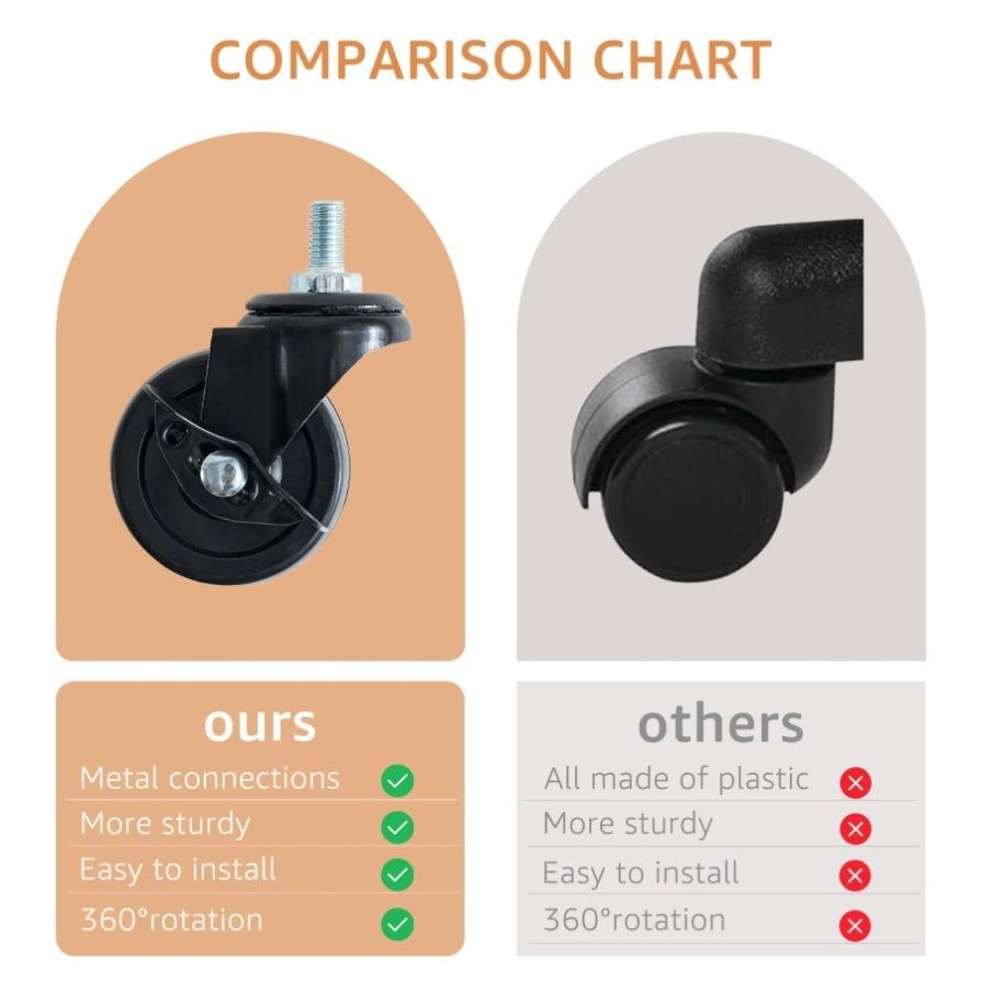 • Comfort and Durability: The soft foot stool is filled with thick, resilient foam, ensuring superior comfort and long-lasting durability. The four silent universal wheels have double bearings made of high-strength steel, making the stool more pliable, durable and smooth