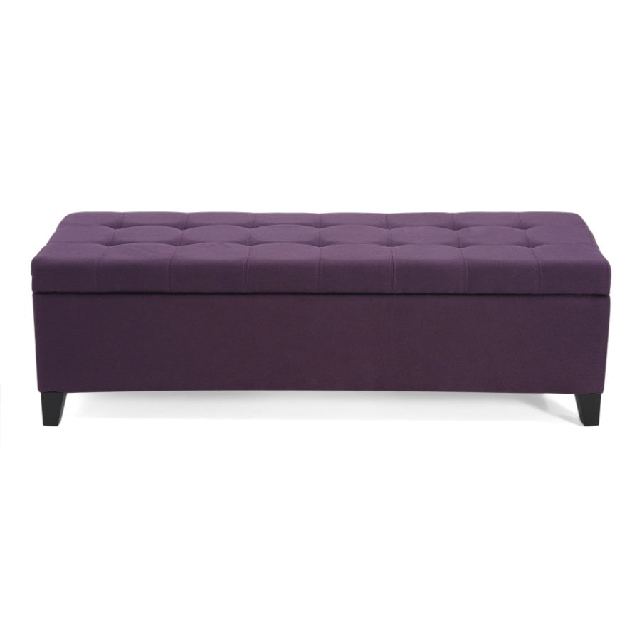 This storage ottoman features a tufted top and pillow soft cushioning. Its hidden interior storage space makes it function without interfering with its stylish appeal.