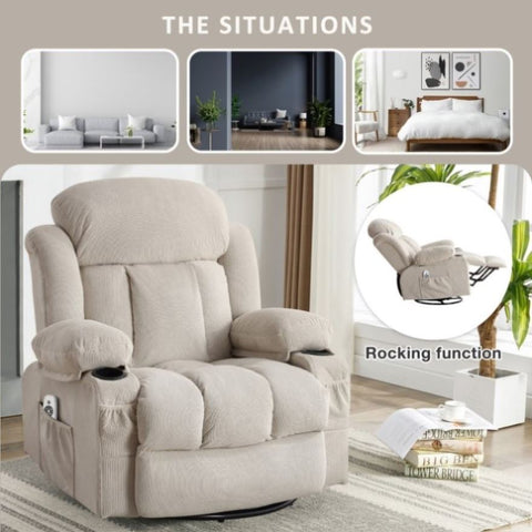 Swinging recliner massage heated sofa, with USB and 2 cup holders in side pockets, W1807P298192