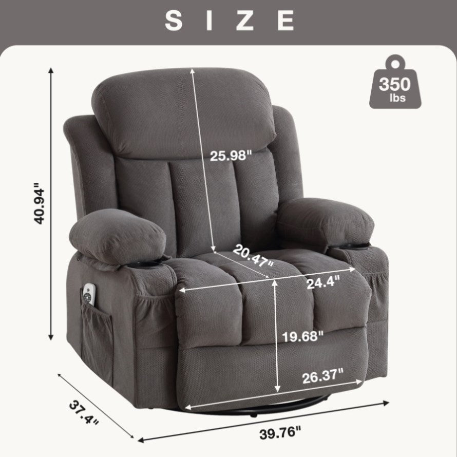Eight acupoint massage with heating.This lounge chair sofa also comes with a USB port that can charge your phone or other electronic devices.