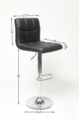 Set up Dimensions: 17.5W x 17.5D x 35-43.5H inches, Seat width 17.5, Seat depth 14, Seat height 21.5-30, Seat back height 12, Cushion height 2, Chrome base diameter 16.5