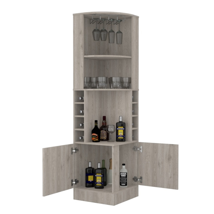 Syrah Corner Bar Cabinet, Eight Bottle Cubbies, Double Door, Two Open Shelves B070P211049