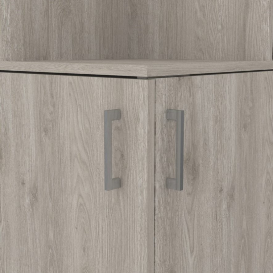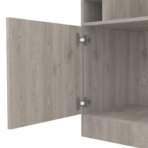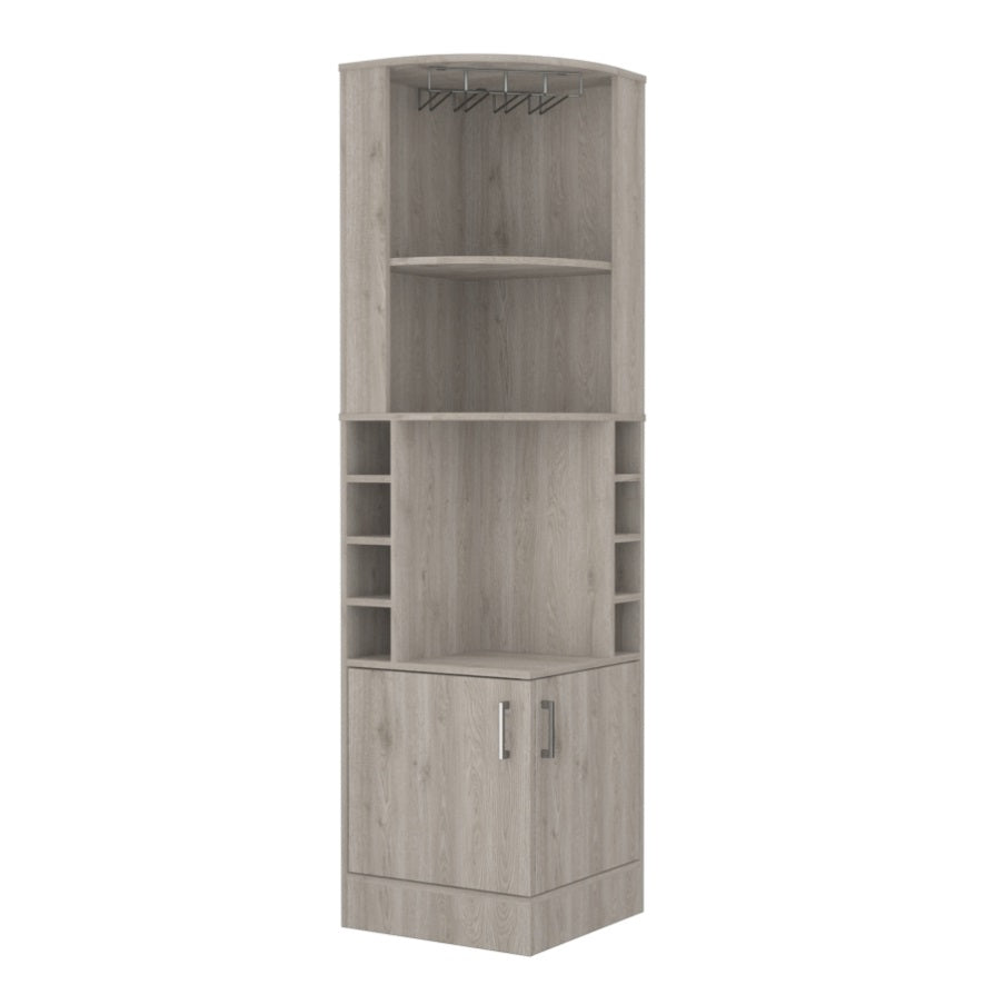 Syrah Corner Bar Cabinet, Eight Bottle Cubbies, Double Door, Two Open Shelves Light Gray B200P242413
