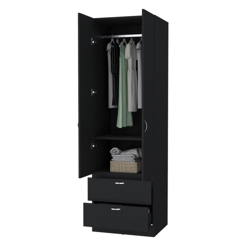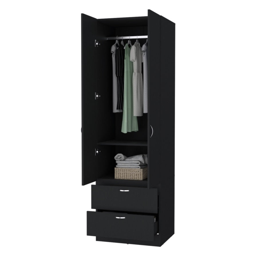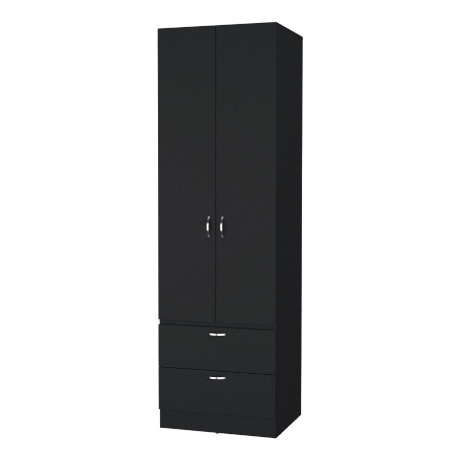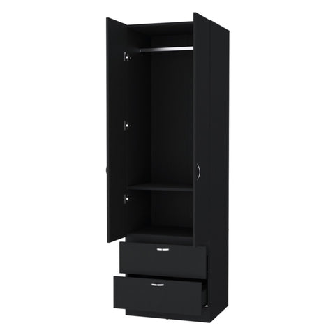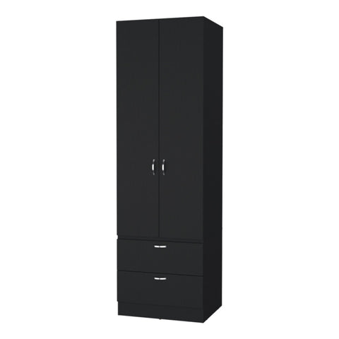 FM FURNITURE Tall Mayer Wardrobe in Melamine with Two Doors and Two Drawers,black,bedroom