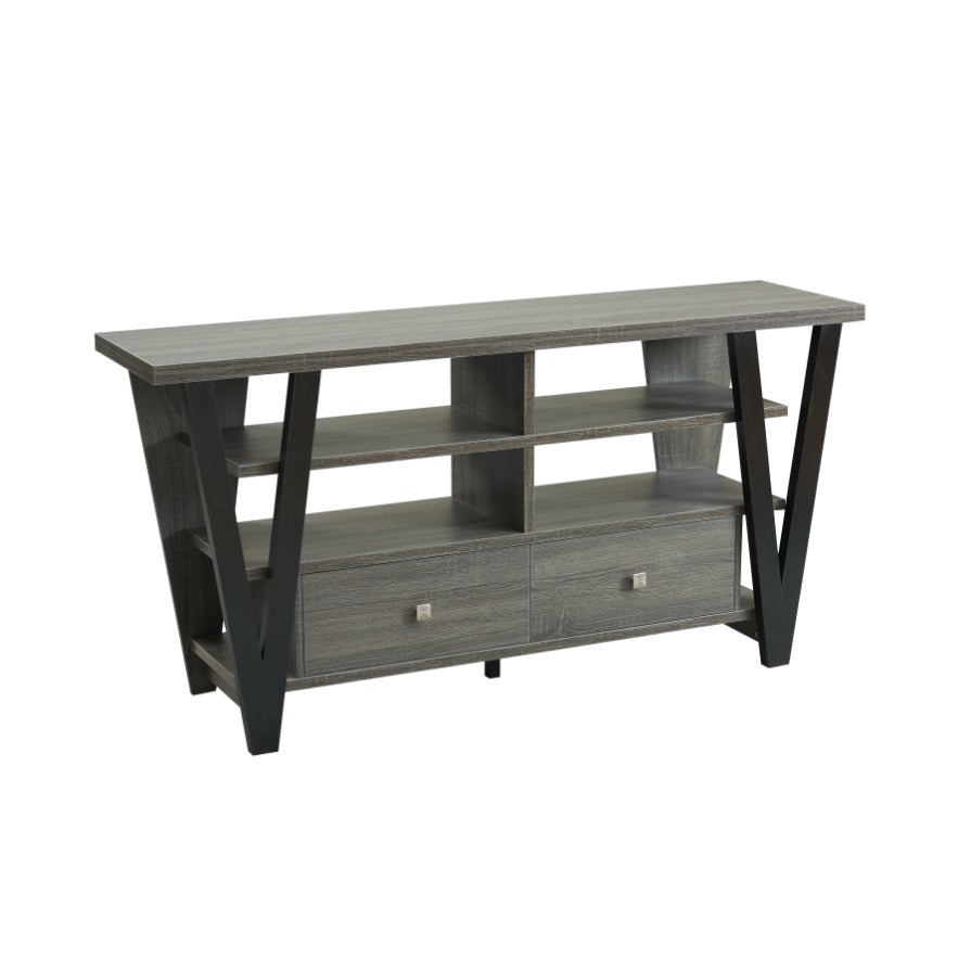 Tall TV Stand with two drawers two divided shelf tiers two tone finish grey and black