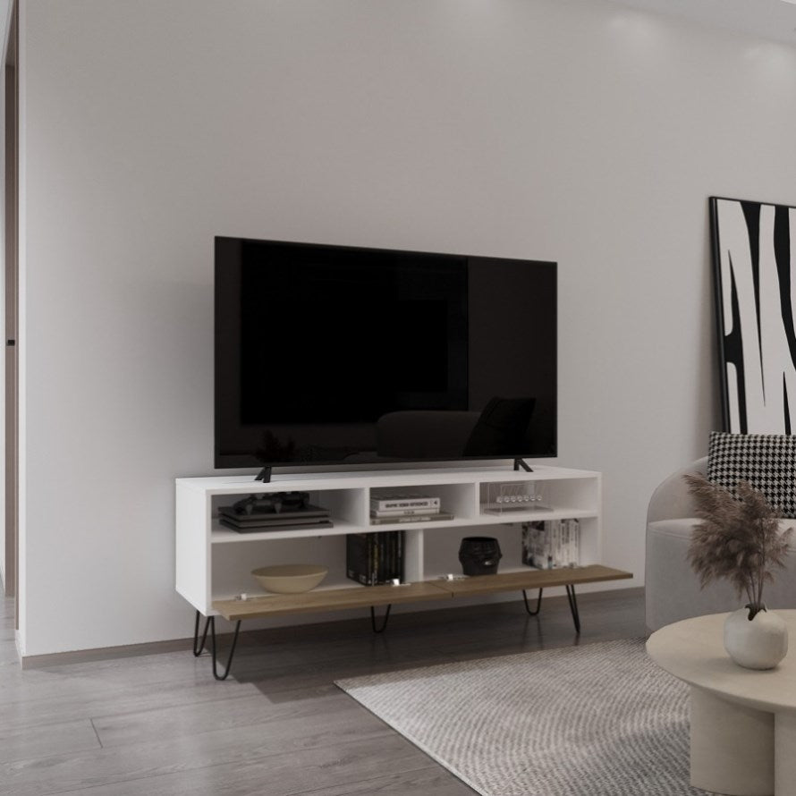 Modern Design: White finish with a wooden base and black metal legs for a contemporary look.