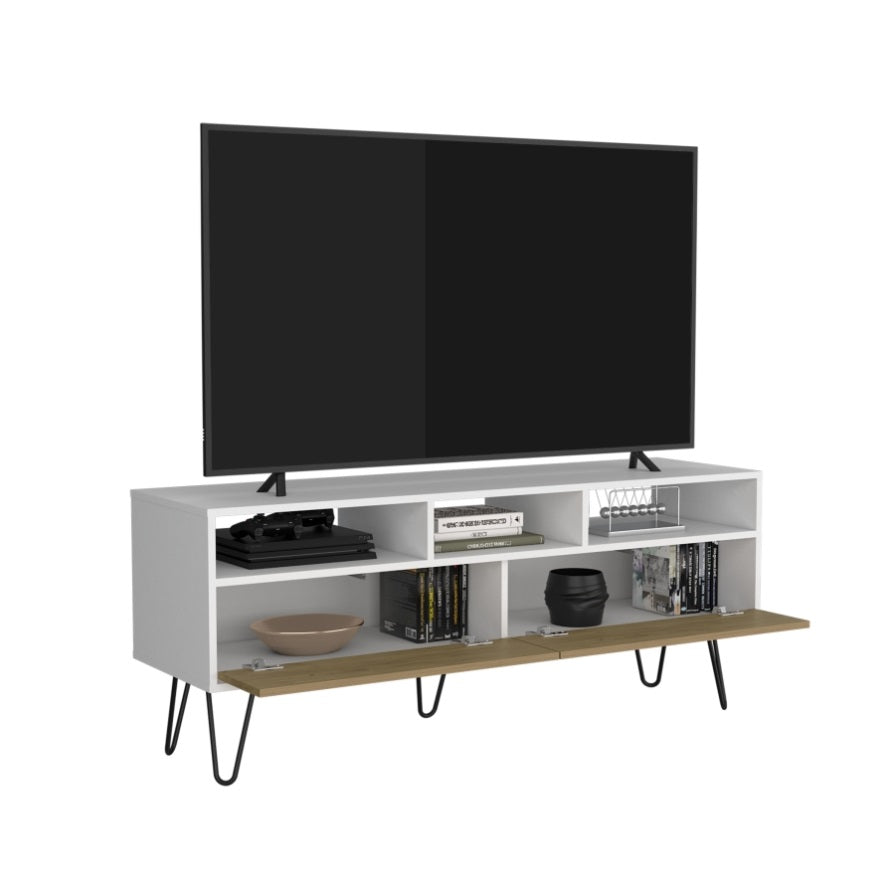 Tori 54" Wide Two-Door Cabinet Tv Stand with Pull Down doors, Three Shelves, Cable Management White B200P286940