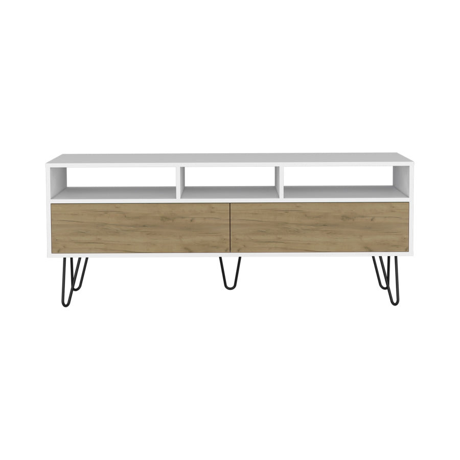 Modern Design: White finish with a wooden base and black metal legs for a contemporary look.
