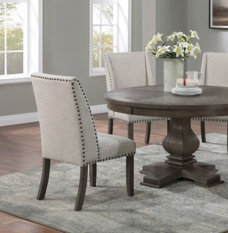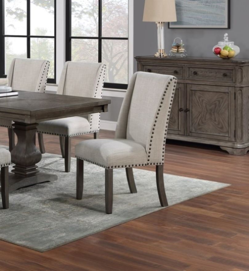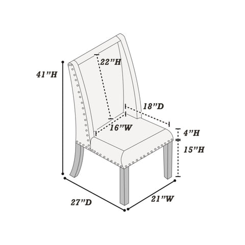 Indulge in the ultimate dining experience with this Dining Chair. This chair boasts a close high back, ensuring optimal support and relaxation as you dine and converse with loved ones. Featuring a sophisticated bronze nail head trim along the edges, adding a touch of luxury and refinement to any dining space. This timeless embellishment accentuates the chair's silhouette, making it a statement piece that effortlessly enhances the aesthetic appeal of your home. Its unmatched charm and sophistication can transform every meal into a memorable occasion.
