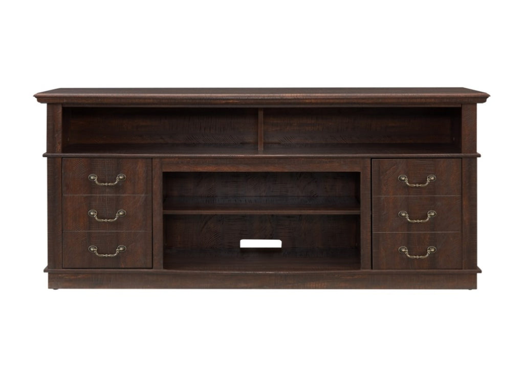 [Your Home Entertainment Center] This TV stand provides a spacious top for a TV up to 65 inches. Large open shelves and 2 beautiful cabinets with drawer doors provide an ample amount of storage space for all your consoles, DVD players, and any else you would like to showcase.