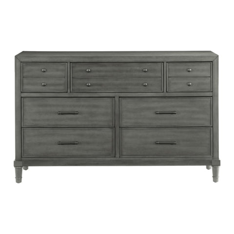 Transitional Style Gray Finish 1pc Dresser of 7 Drawers Dark Bronze Handles Wooden Bedroom Furniture B011P147531