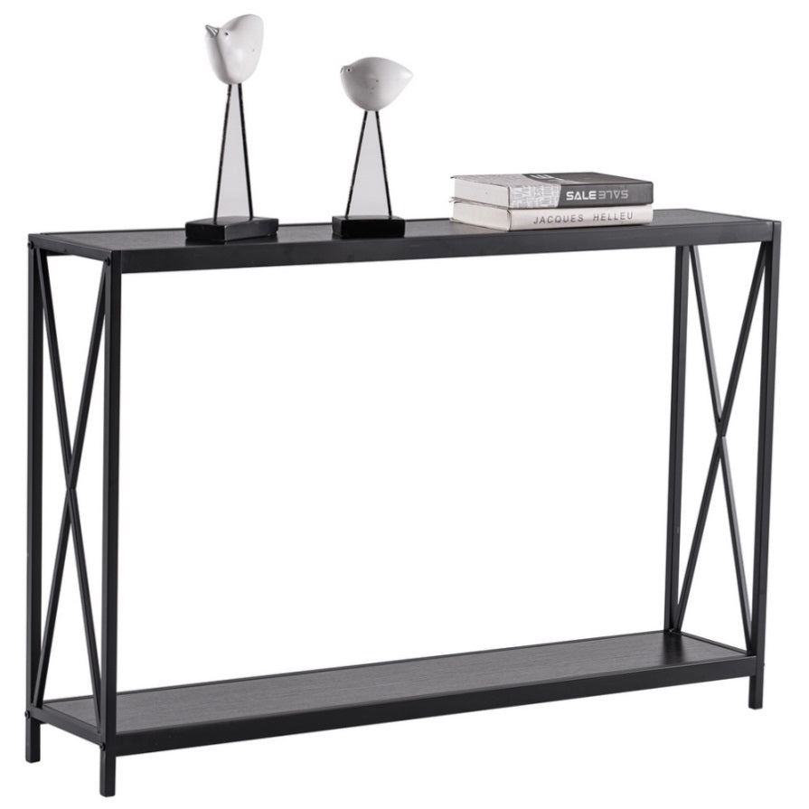 Triamine Board Cross Iron Frame Porch Table Sofa Side Table Black Wood Grain 72302978