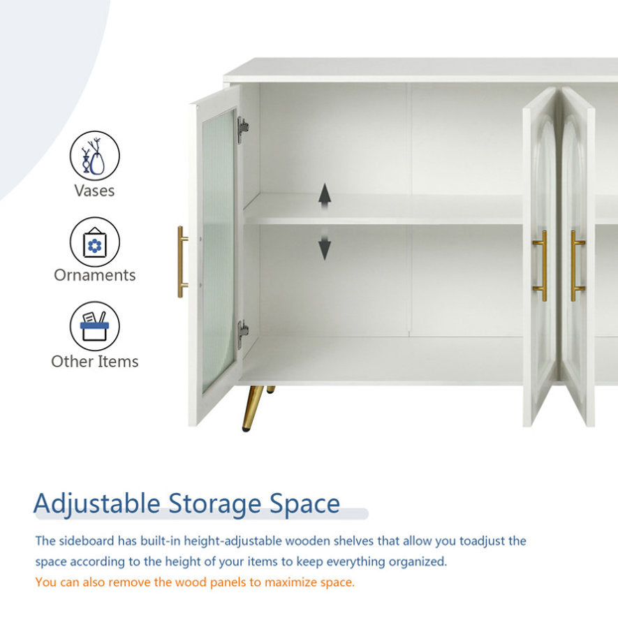 The storage side cabinets of this cabinet give you plenty of storage, perfect for kitchens, but also for use in the living room. Not only can it be used as a TV stand for TVs up to 65 inches, but it can also be placed in a hallway, making it perfect for any living room or entertainment center.