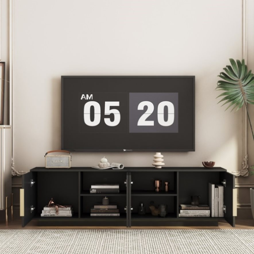 This TV stand has a large storage space, perfect for storing TV components, game accessories, books and decorations. You can also place living room decorations on the TV stand.
