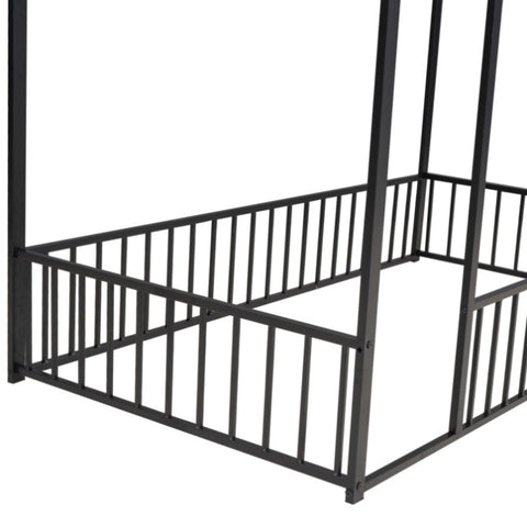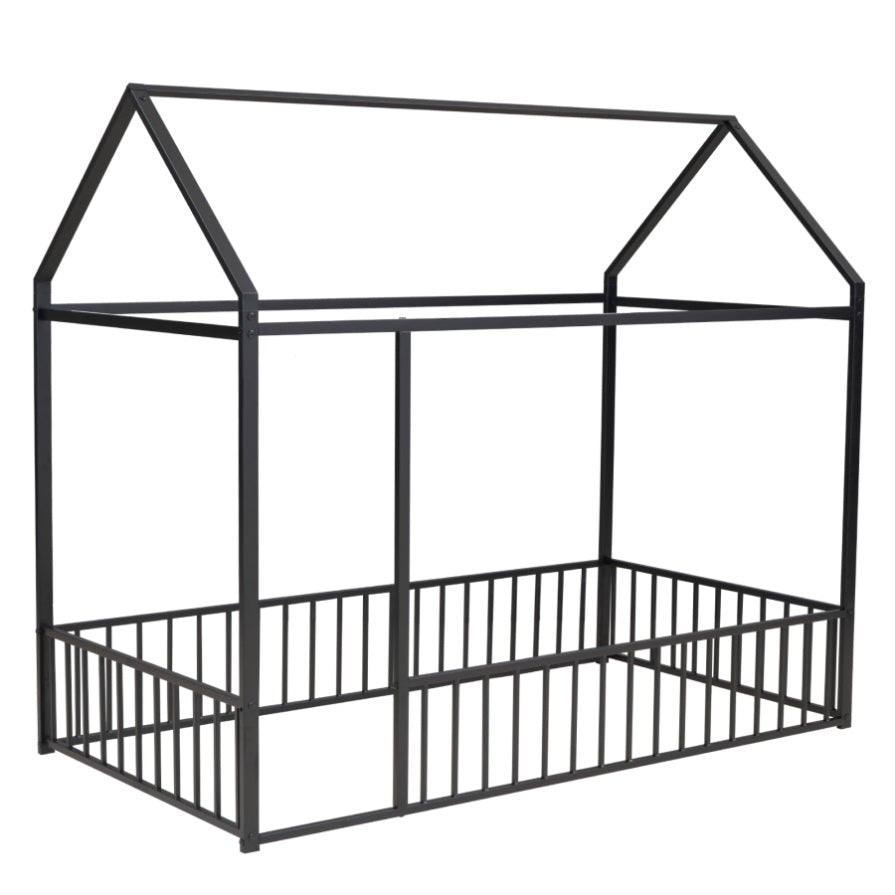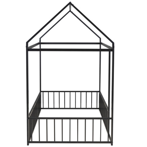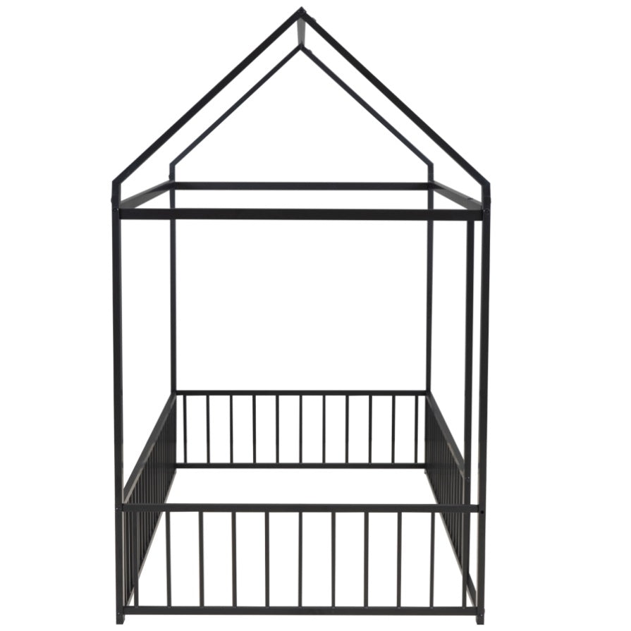 Twin Size Metal Bed House Bed Frame with Fence, for Kids, Teens, Girls, Boys, Black MF304315AAB