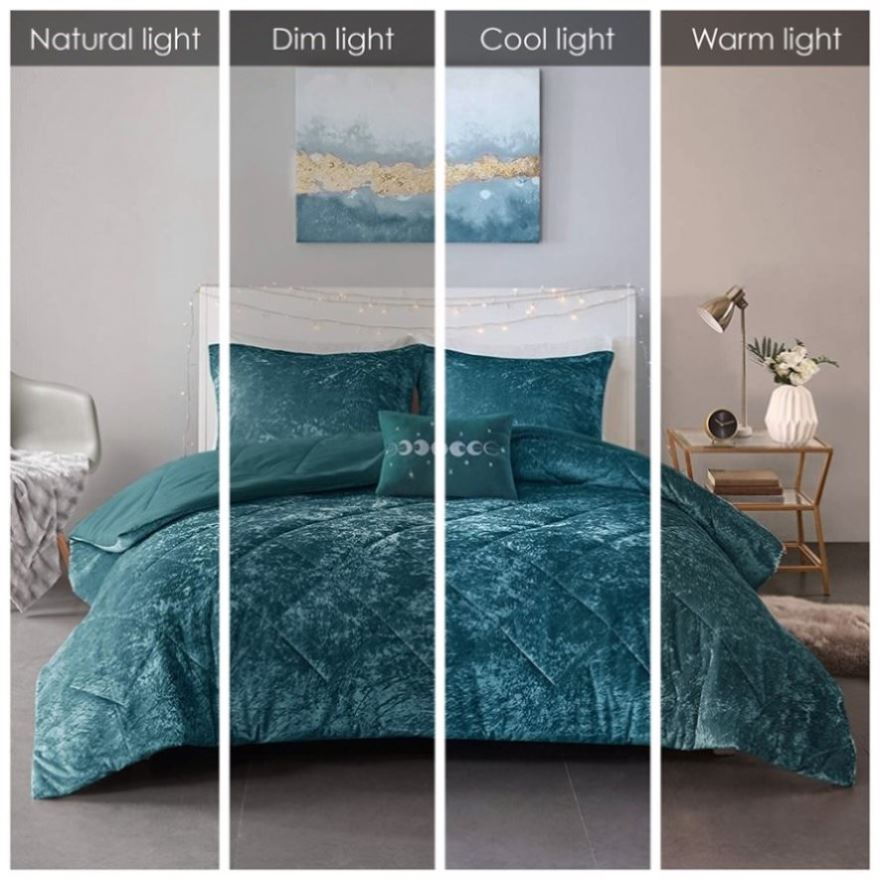Create a luxuriously comfortable and lush bedroom space with the Intelligent Design Felicia Velvet Comforter Set. The crushed velvet, teal comforter features a quilted diamond top that adds dimension to the glamorous look. Matching shams (1 for Twin/Twin XL Sizes) coordinate with the velvet comforter, while an oblong decorative pillow provides the perfect finishing touch. Hypoallergenic polyester filling in the comforter and decorative pillow provide exceptional warmth and comfort. Machine washable for easy care, this velvet comforter set brings incredible softness and comfort with a glamorous flair to your bedroom decor. Items in the set may come in a rolled or compressed packaging, which will need to be fluffed up or steam ironed before use to remove wrinkles.