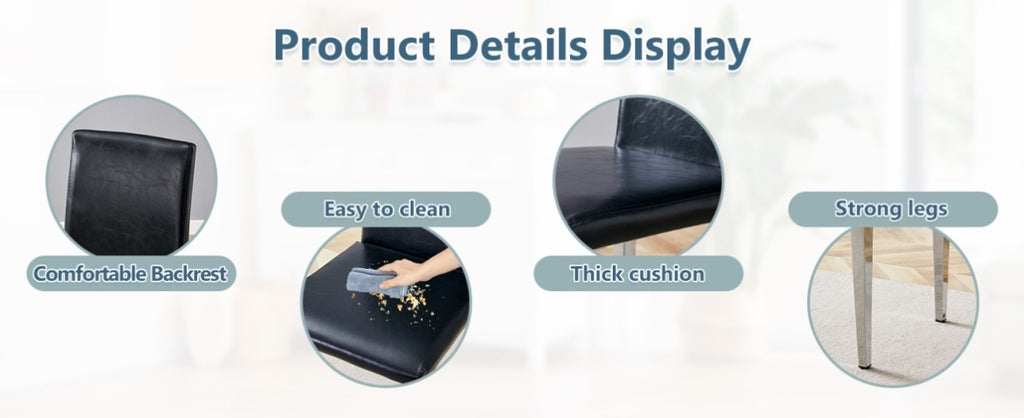 PU leather feel: The seat cushion is made of black PU material, with a delicate and glossy appearance, possessing the high-end texture of leather, which can add elegance and fashion to the home environment.