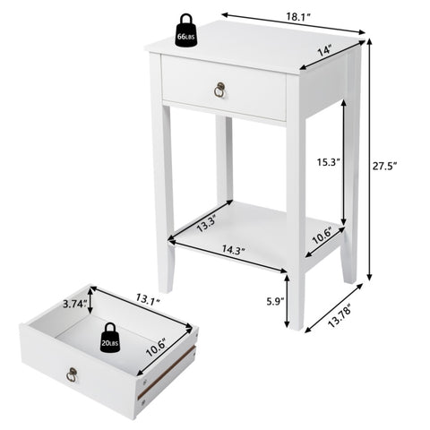 Two-layer Bedside Table Coffee Table with Drawer White 99618998