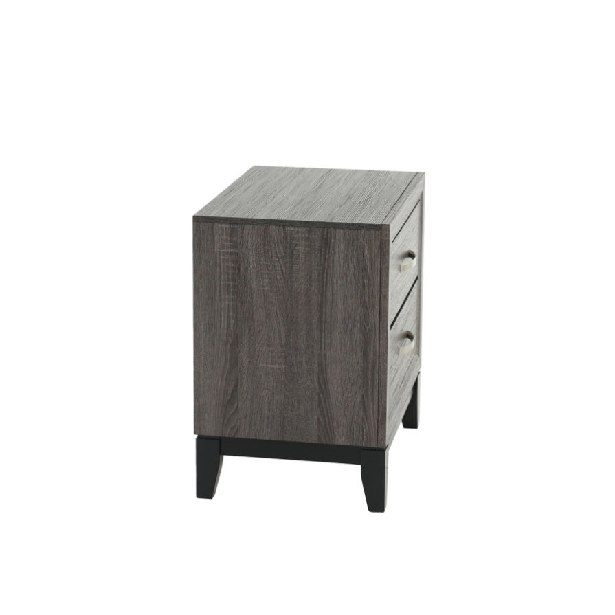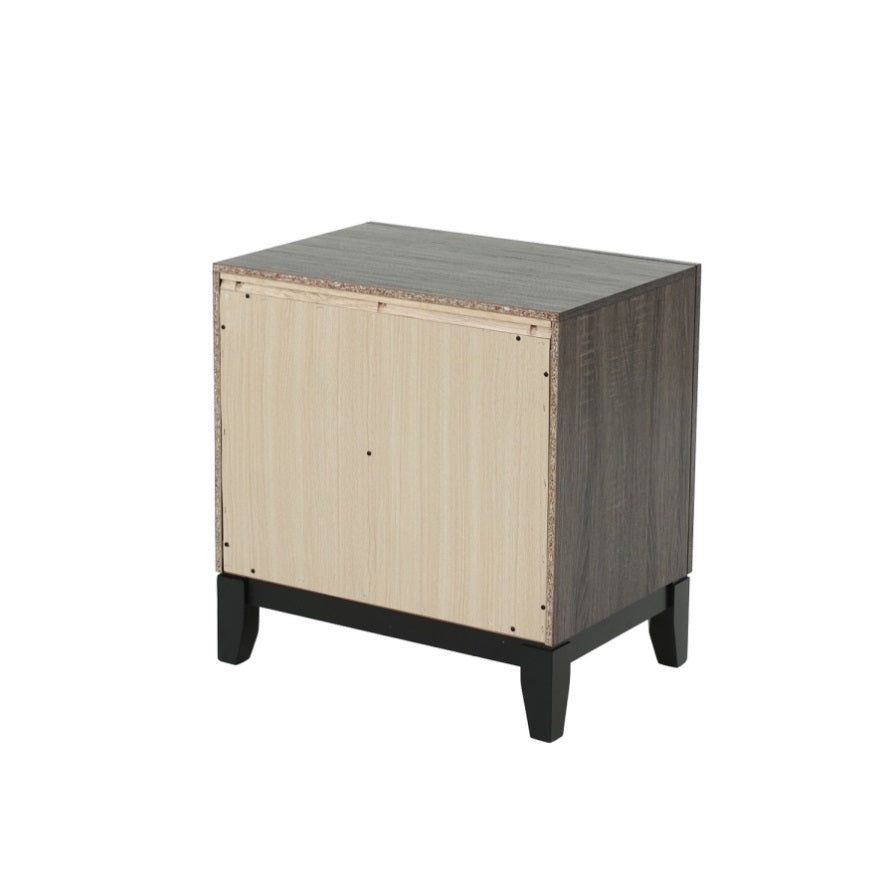Two-Tone Wooden Nightstand with 2 Drawers, Foil Grey and Black B016P251357