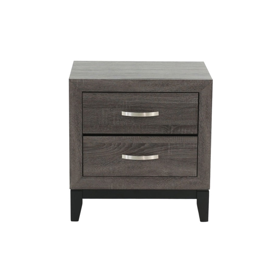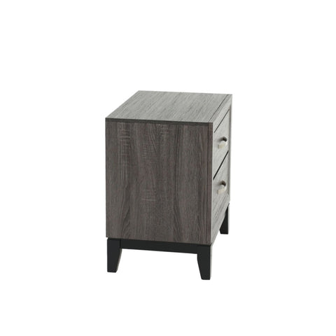 Add style and charm to your bedroom with this elegant grey finish nightstand, perfect to keep your go-to items at your nearest dispense. Embellish your bedroom space with this contemporary-styled wooden nightstand. The bedside table comes with 2 drawers to tuck away books, diaries, glasses, medicines, or private essentials for nightly routines.