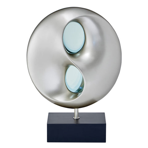 Ultra modern design accent lighting table lamp features polyresin silver orb ball intertwining curved LED lights infinity mirror that sits on elegantly crafted black pedestal. Great addition piece on your night stand, end table, or sofa table. Remarkable accent lighting that can enhance the surrounding ambiance; perfect for a night light, or a mood light to brighten up any room.